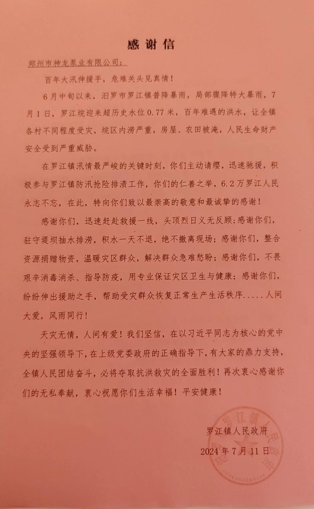 羅江鎮(zhèn)人民政府發(fā)來(lái)感謝信